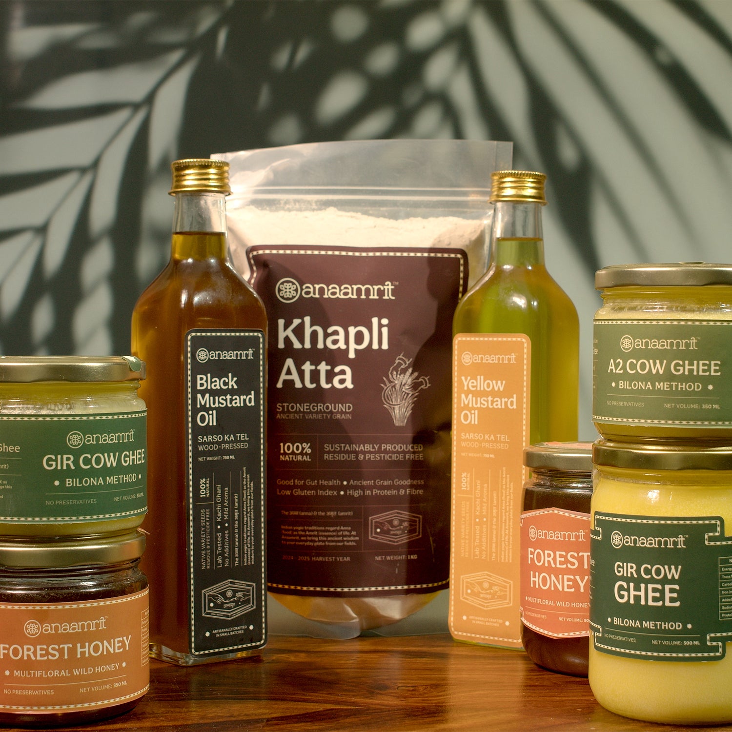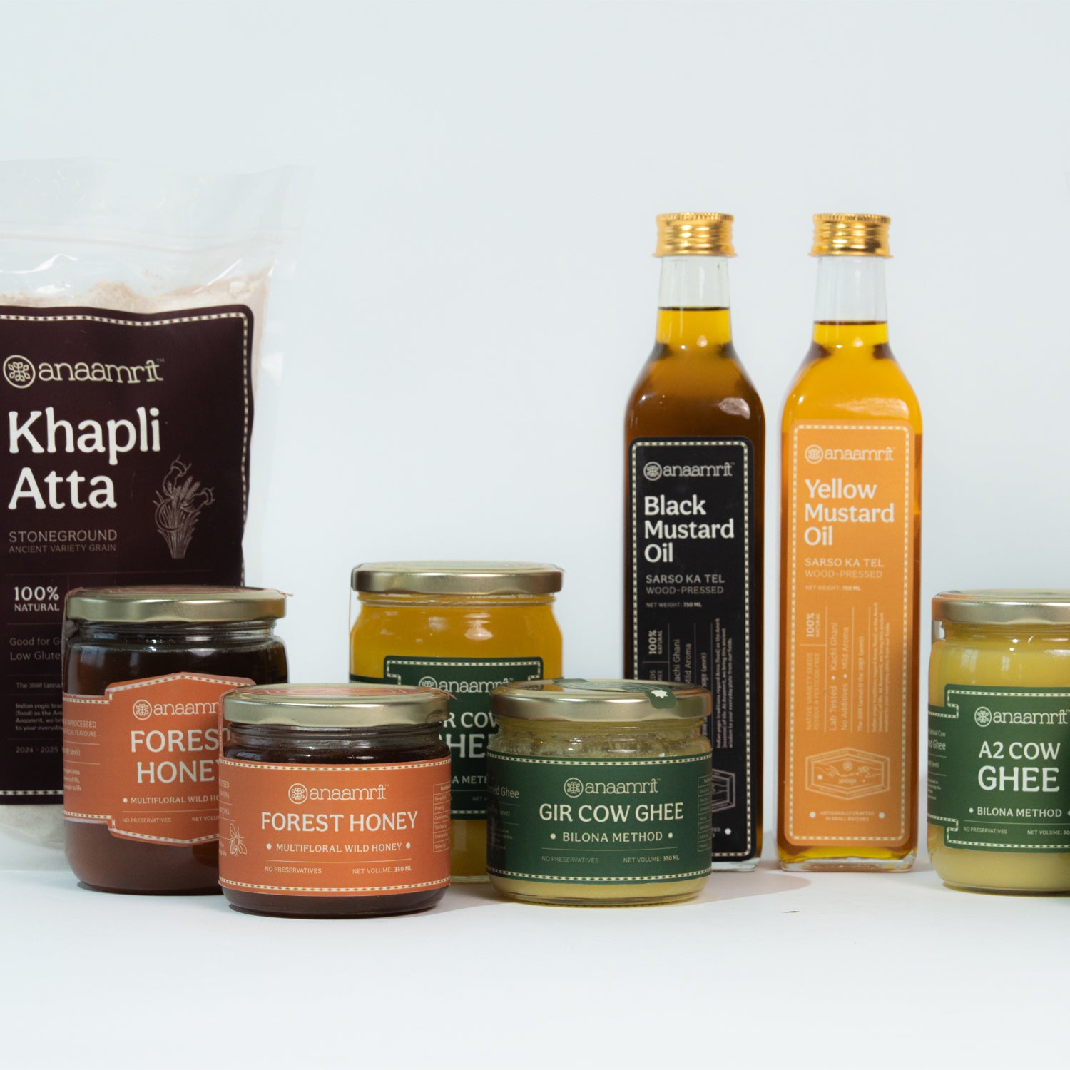 A thoughtfully curated selection of Anaamrit staples in smaller sizes. This starter kit is perfect for everyday households who want to begin their journey toward better, more mindful living.