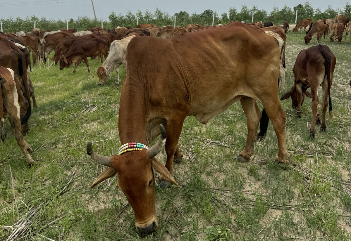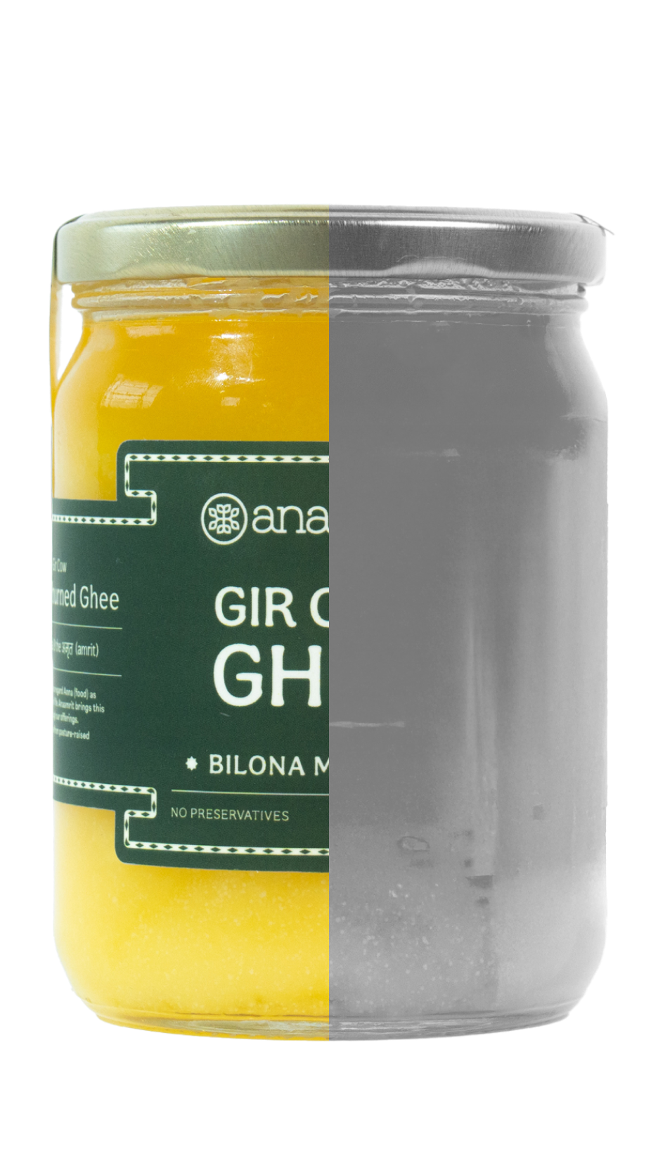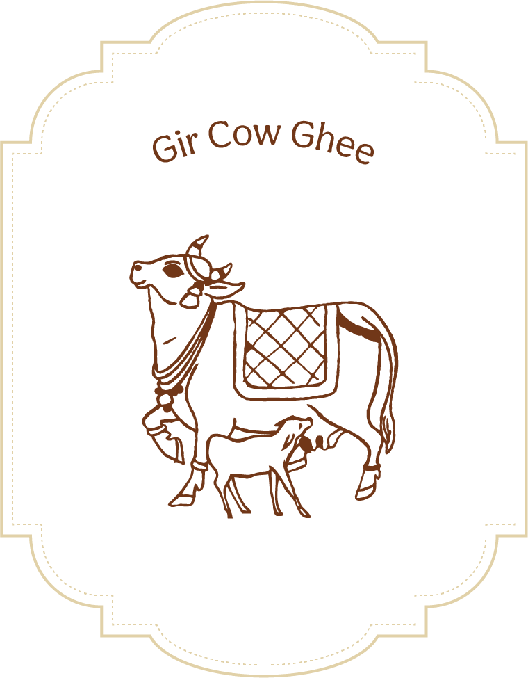Gir cows produce rich milk that translates into a smooth, aromatic ghee when churned and clarified using the bilona process.