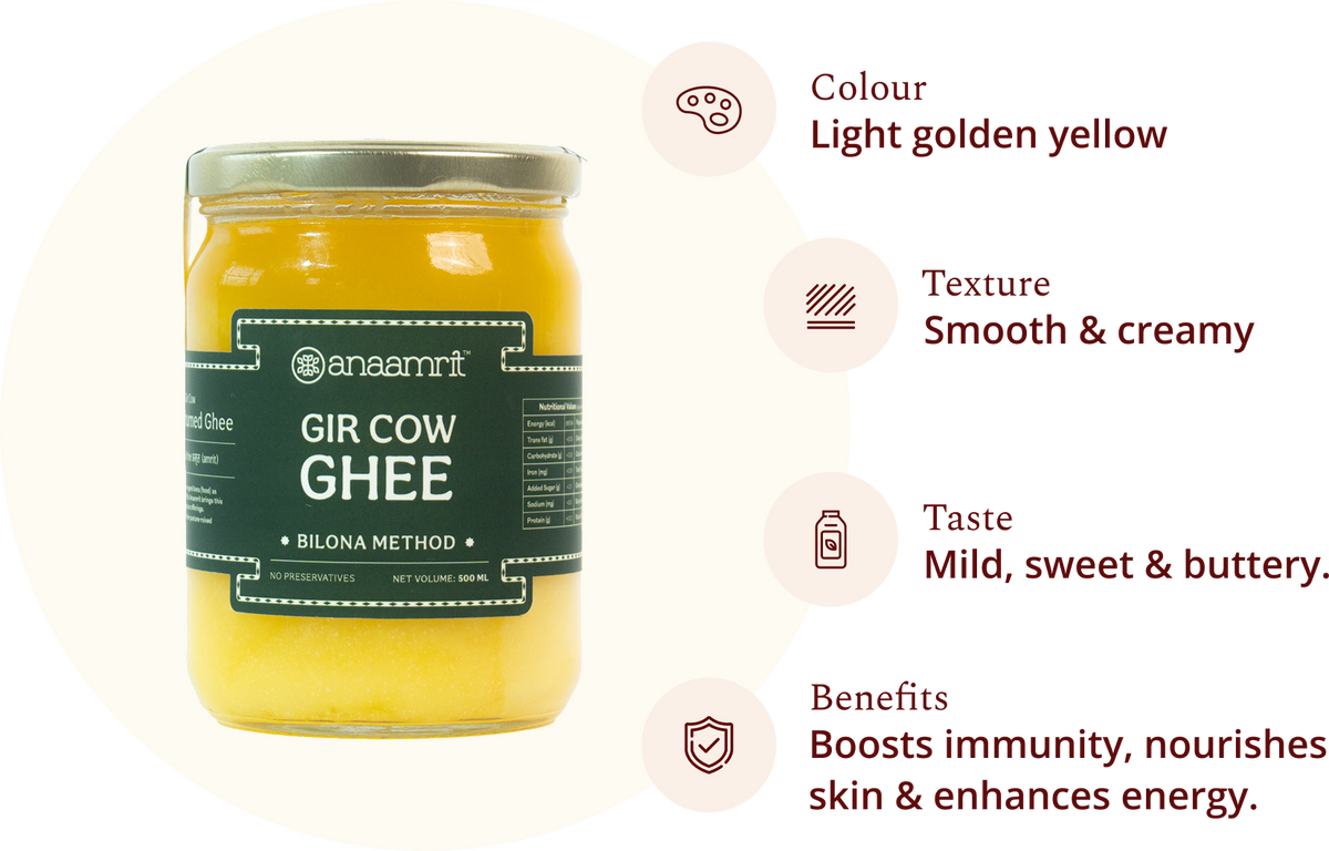 Made using traditional Bilona method to preserve taste, aroma & nutrition