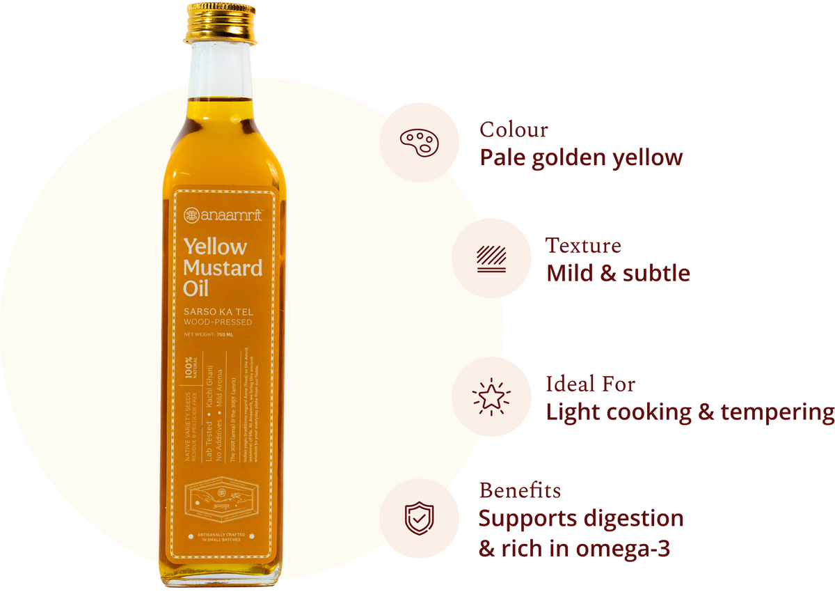 Yellow Mustard Oil has a gentler aroma and flavor, making it suitable for cuisines beyond Indian cooking.
